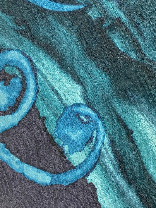 90s Deadstock Silk Necktie, Men's Vintage Teal/ Blue Abstract Pattern Tie, NOS