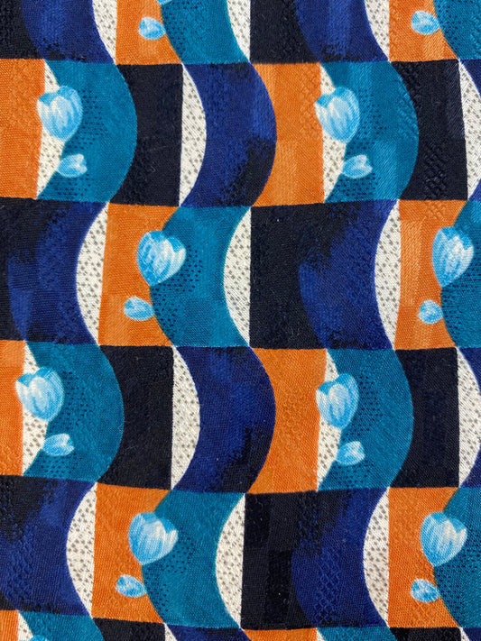 90s Deadstock Silk Necktie, Men's Vintage Teal/ Purple/ Orange Geometric Pattern Tie, NOS