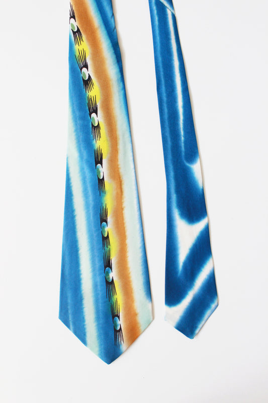 Vintage 1950s Bright Blue With Yellow/Orange Stripe, Hand Painted Tie