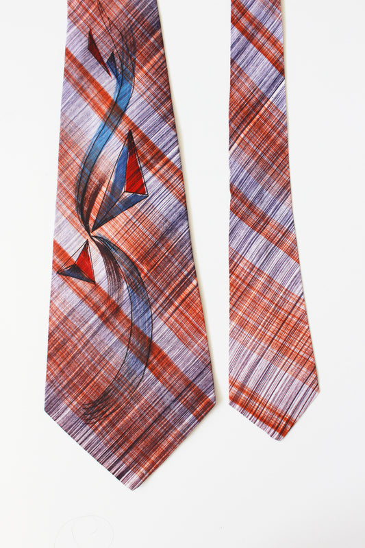 Vintage 1950s Hand Painted Purple And Orange Swirl With Triangle Tie