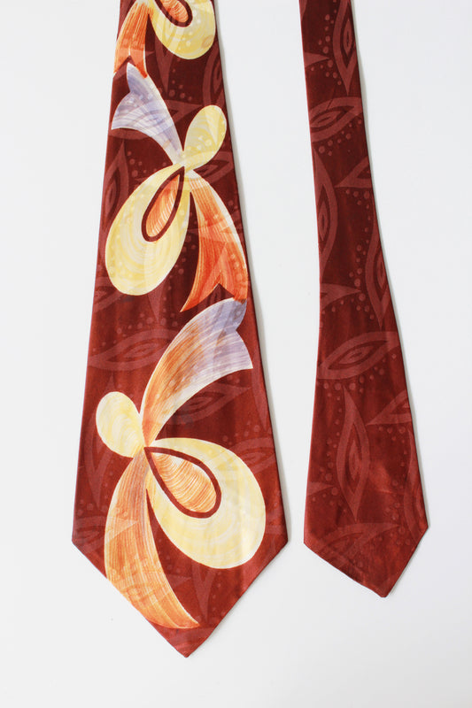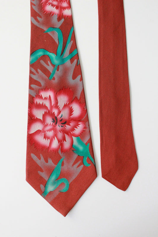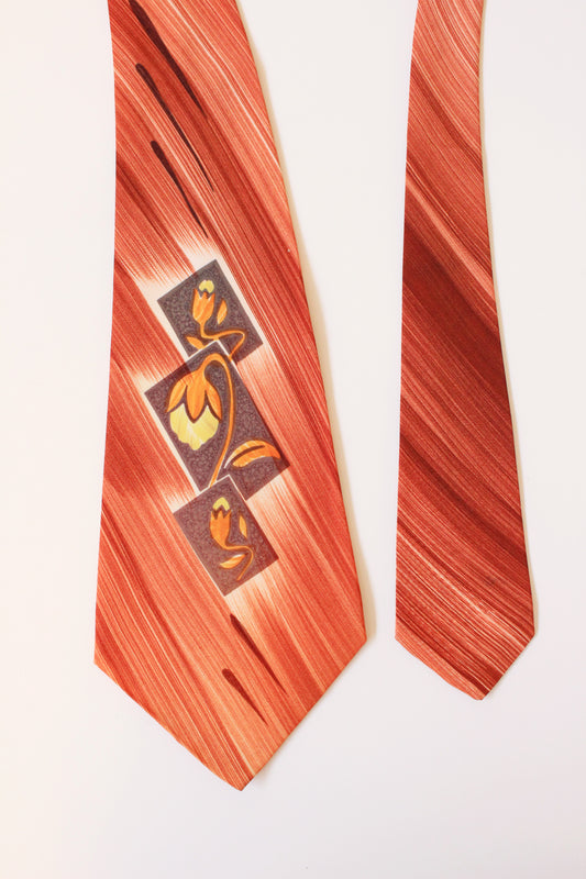 Vintage 1950s Burnt Orange Floral Print Tie, De luxe HOLLYVOGUE