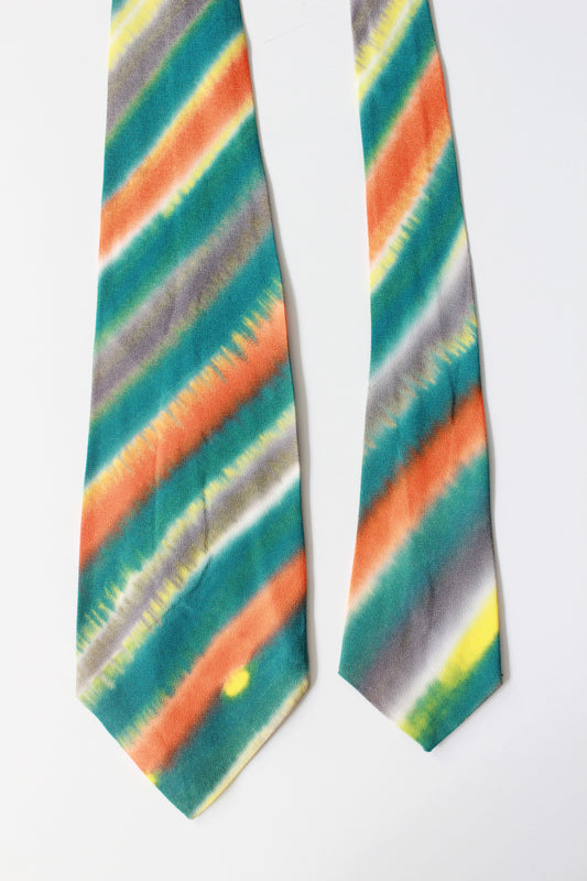 Vintage 1950s Neon Teal Orange And Yellow Striped Hand Painted Tie