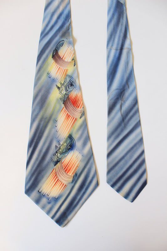 Vintage 1950s Vibrant Abstract Fantasy Hand-Painted Tie