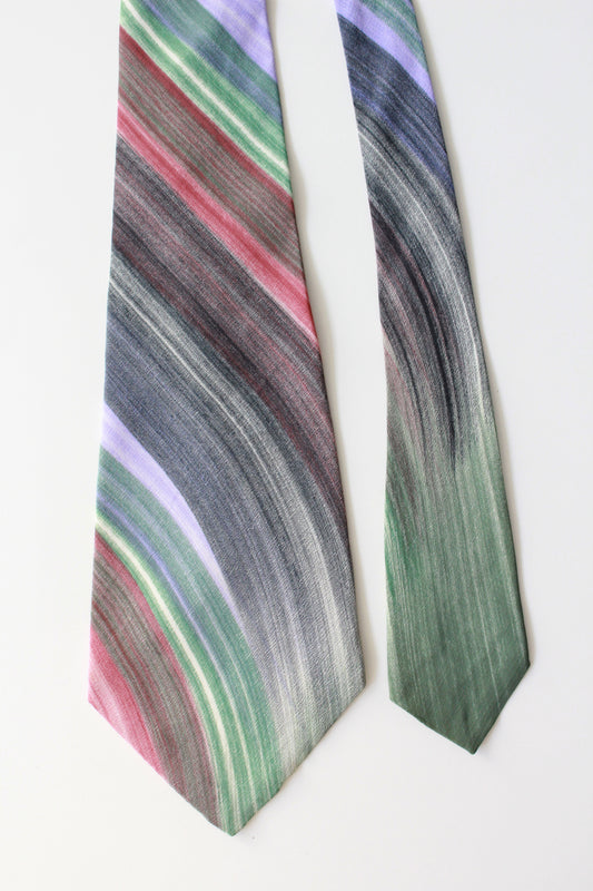 Vintage 1950s Purple/Green/Magenta/Grey Stripe Hand Painted Rayon Tie