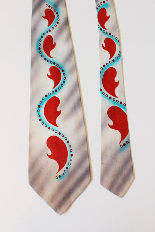 Vintage late 1940s Early 1950s Grey/Red/Teal Rayon Tie