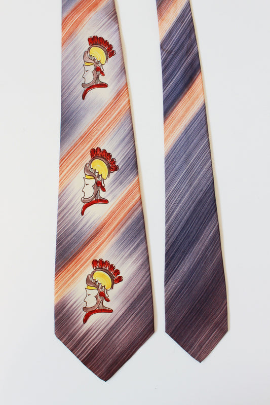 Vintage 1950s Hand Painted Purple Gladiator Novelty Rayon Tie