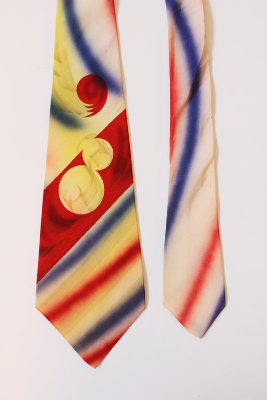 Vintage 1950s Abstract Primary Colour Hand Painted Circus Tie