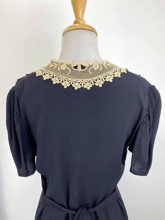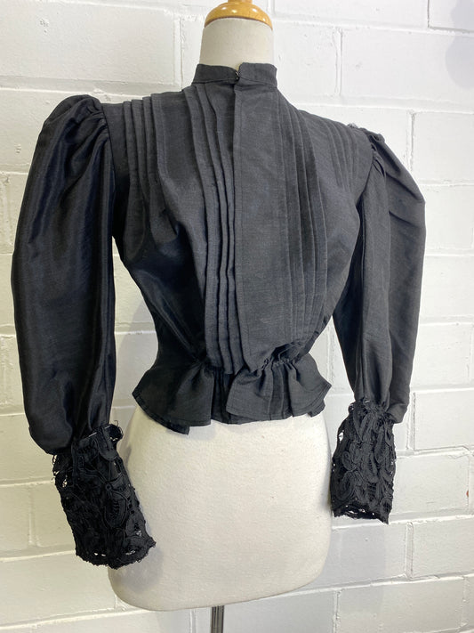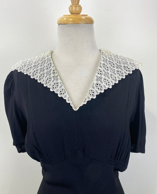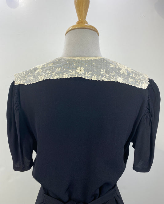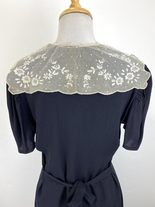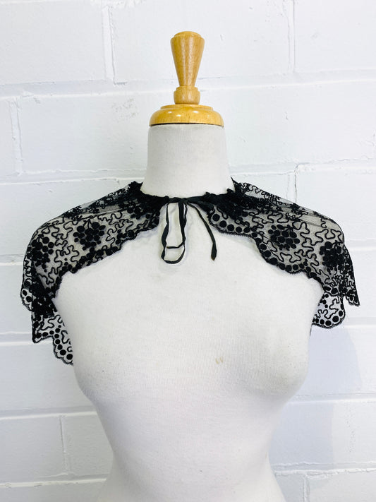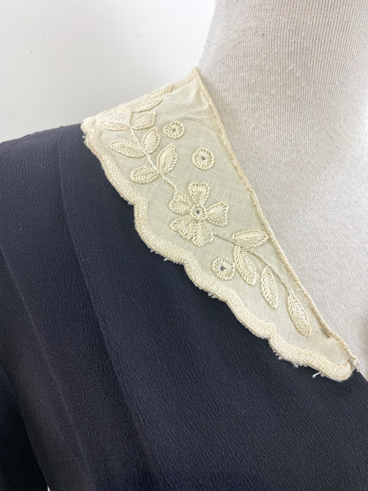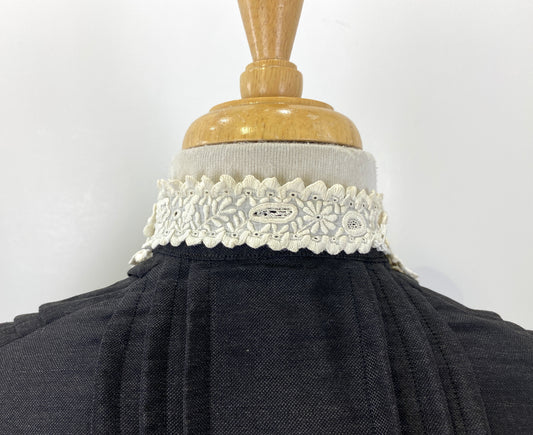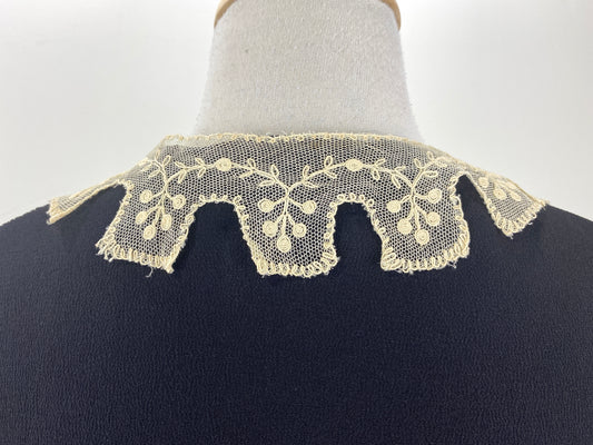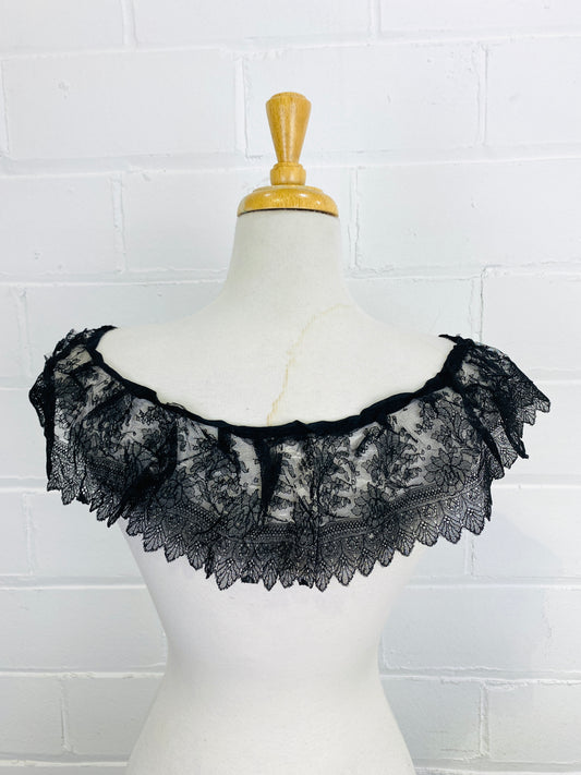 Antique Victorian Black Embroidered Silk Tulle Lace Collar