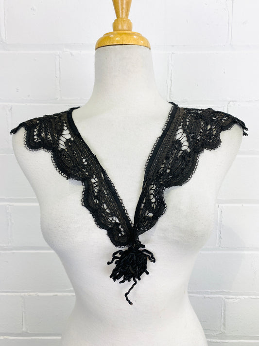 Antique Victorian Black & Brown Tape-work Hand Lace Collar