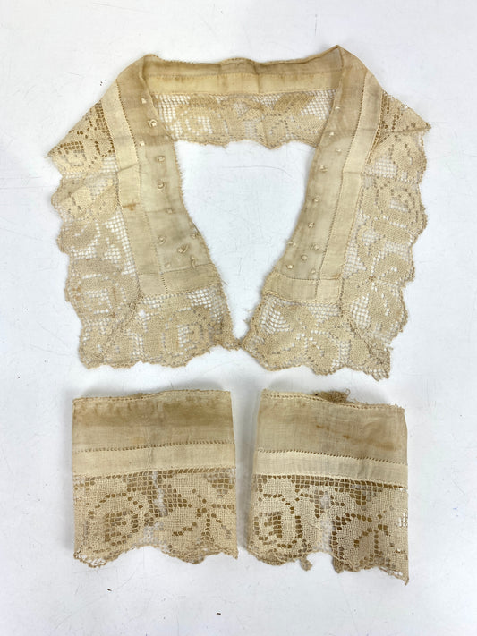 Vintage 1920s Beige Cotton Lace Collar and Cuffs Set