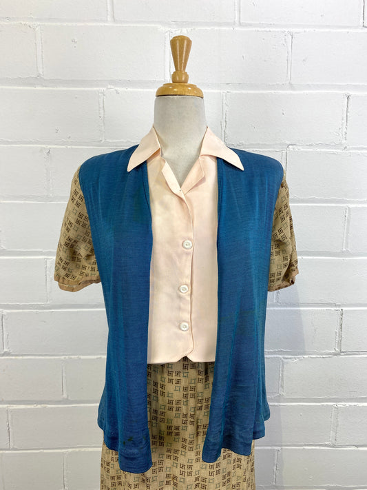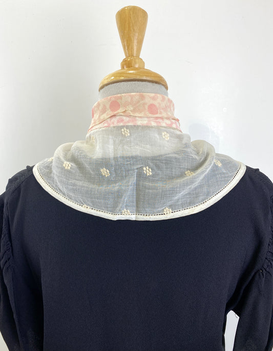 Vintage 1930s White & Pink Embroidered Voile Collar With Print