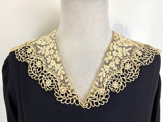 Vintage 1930s Beige Cord Embroidered Tulle Lace Collar