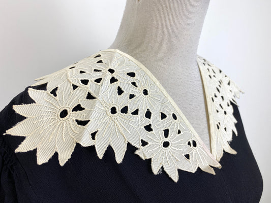 1950s Detachable Collar, Scalloped Edge and Flower Cutwork Embroidery