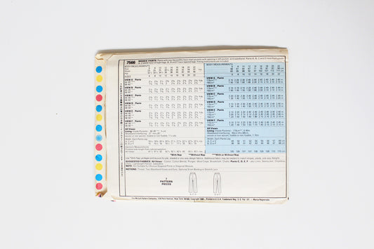1980s Wide And Tapered Pants McCalls 7566 Sewing Pattern, Uncut Size 8
