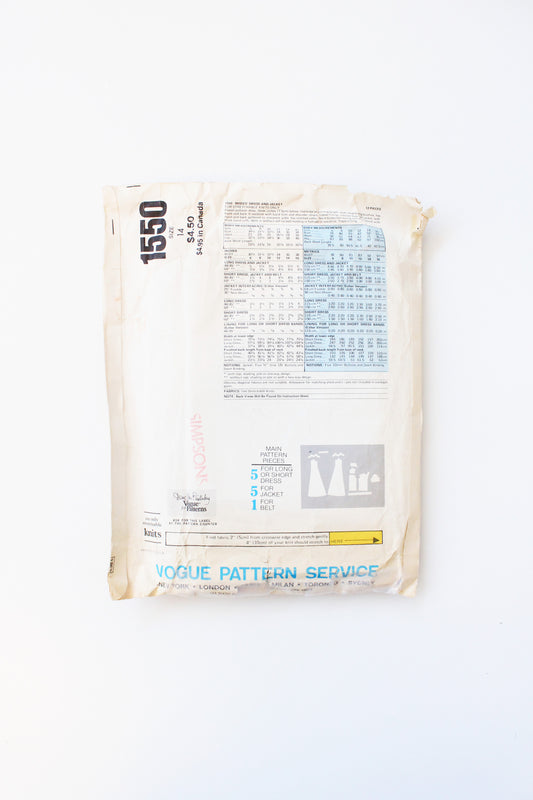 1980s Dress And Jacket Very East Vogue 1550 Sewing Pattern, Diane von Furstenberg, Cut-Complete Size 14