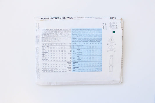 1980s Petite Jacket And Skirt Vogue American Designer 2015 Sewing Pattern, Bill Blass, Partially Cut-Complete Size 6-8-10
