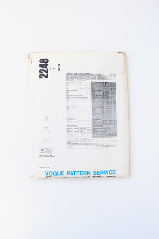 1980s Jacket, Blouse, Skirt And Tie Vogue American Designer 2248 Sewing Pattern, Cut-Complete Size 8