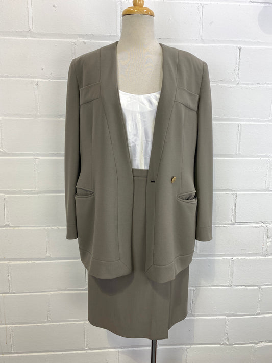 Vintage 90s Green Wool Giorgio Armani Skirt Suit, Small