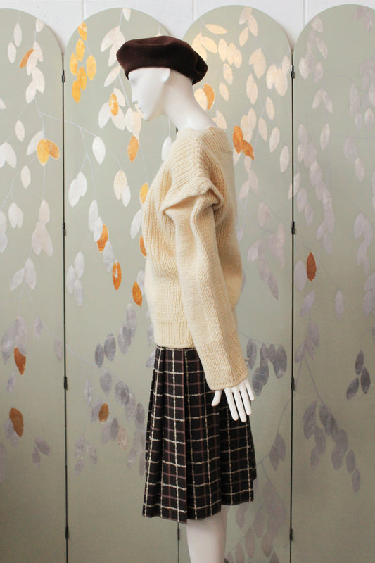 Vintage 1980s Oversized Boat Neck Cream Chunky Knit Sweater, Medium