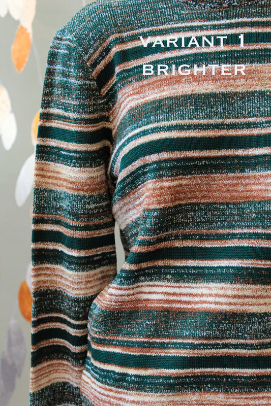 Vintage 1970s Green And Tan Speckle Striped Long Sleeve Knit Top, Medium