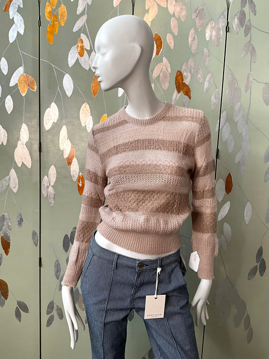 Vintage 1970s Deadstock Tan Striped Knit Crew Sweater, Small