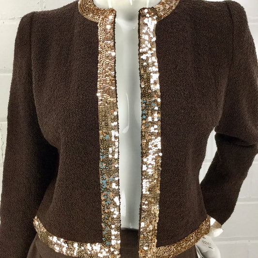 Vintage 1980s Brown Sequin Adolfo Boucle Cardigan, S-M