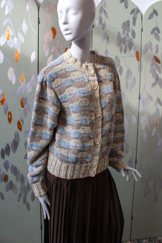 Vintage 1980s Popcorn Knit Austrian Cardigan, Deadstock, Small