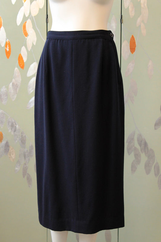 Vintage 1980s Blue Wool Guy Laroche Skirt Suit, Medium