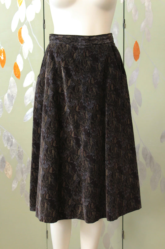 Vintage 1970s Velveteen Abstract Print Skirt Suit Set, XS