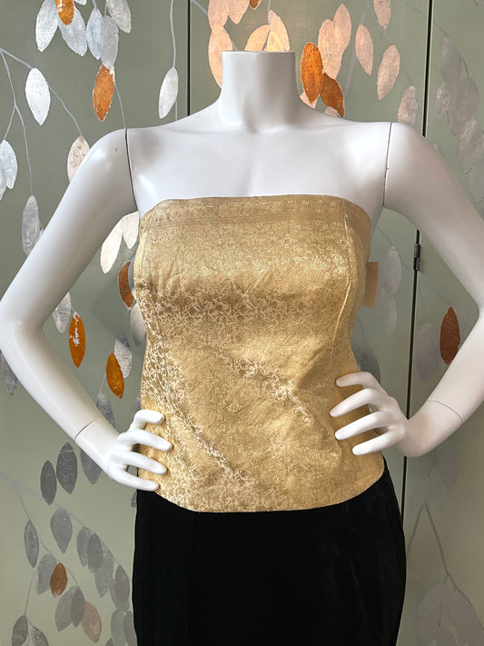 Vintage 2000s Gold Metallic Silk Brocade Bustier and Pants Set, Large