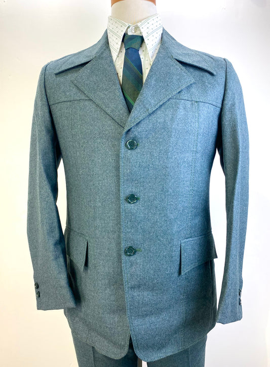 Vintage 1970s Deadstock Men's Green Wool 3-Piece Suit, Kent Tailoring, NOS