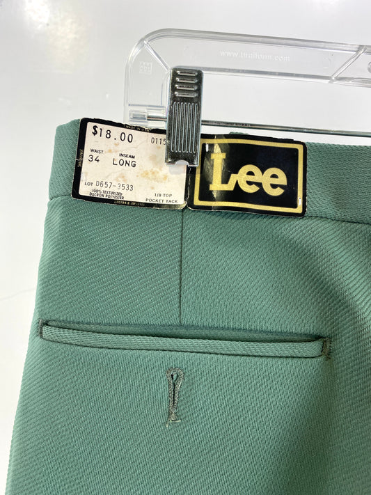 Vintage 1970s Deadstock Lee Polyester Flared Trousers, Men's Medium-Dark Green Slacks, NOS