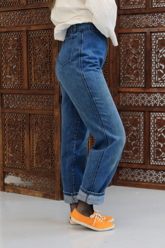 Vintage 1970s High Waist Medium Wash Blue Denim Jeans, W30