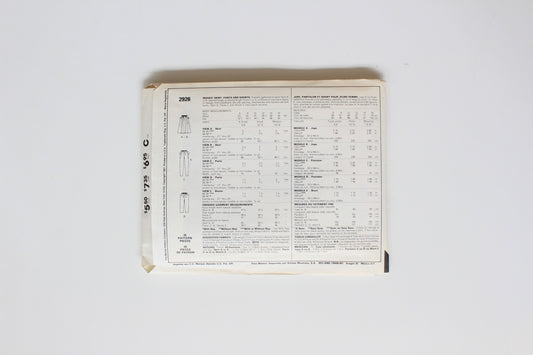 1980s Casual Skirt, Pants And Shorts Easy McCall's 2926 Sewing Pattern, Miss, Uncut Size 6-8