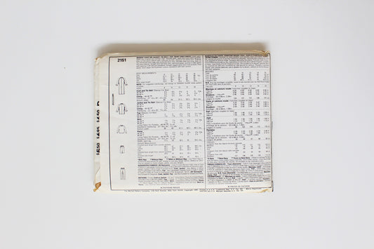 1980s Coat/Jacket With Matching Pants/Skirt McCall's 2151 Sewing Pattern, Uncut Size 8
