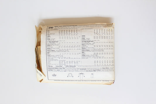 Early 1980s Jacket, Dress, Blouse And Skirt McCall's 8763 Sewing Pattern, Cut - Complete Size 22