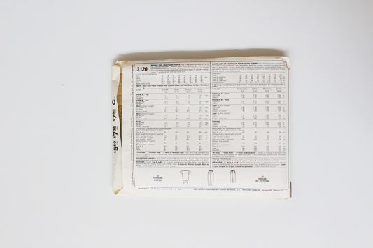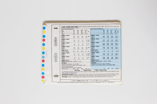 1980s Junior/Teen Pattern For Girls, Pants Or Shorts McCall's 7419 Sewing Pattern, Uncut Size 7-8