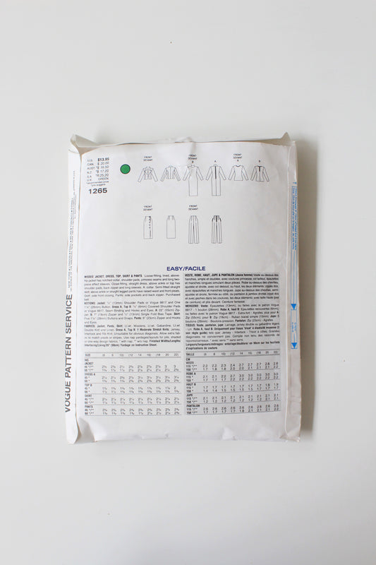 1990s Multi-piece Vogue Career Wardrobe 1265 Sewing Pattern, Jacket/Dress/Top/skirt/Pants, Uncut Size 6-10