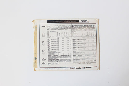 1980s Easy Sleeveless Brooke Shields Top McCall's 9088 Sewing Pattern, Uncut Size XS 6-8