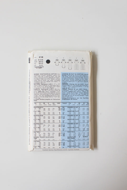 1980s Ruffle Night Gown Butterick 4489 Easy Sewing Pattern, Uncut Size XS-S-M