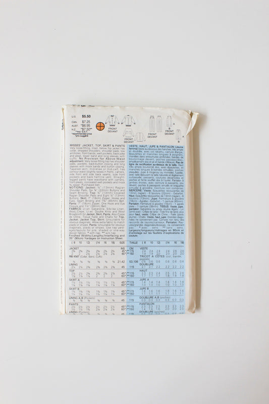 Mid 1980s Jacket, Top, Skirt And Pants Butterick 5863 Sewing Pattern, Uncut Size 8,10,12