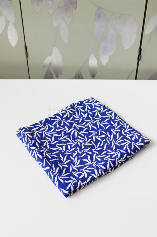 1940s Blue With White Falling Leaves Summer Rayon Sewing Fabric, 4 Yards