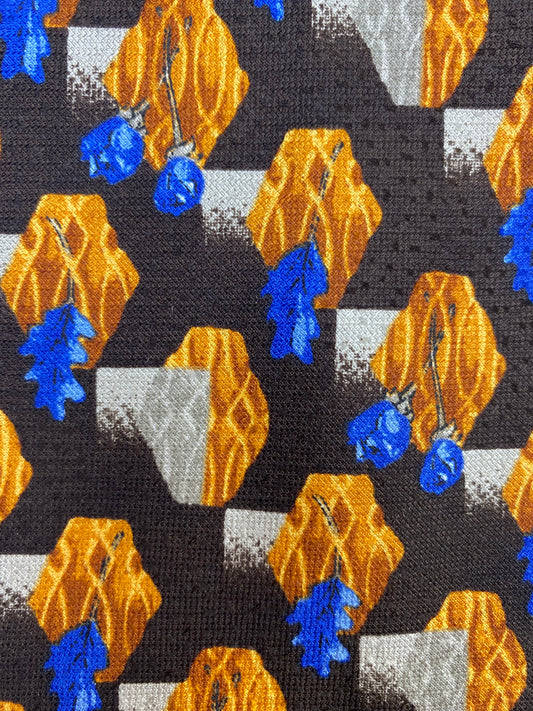 90s Deadstock Silk Necktie, Men's Vintage Blue/ Brown/ Gold Print Tie, NOS