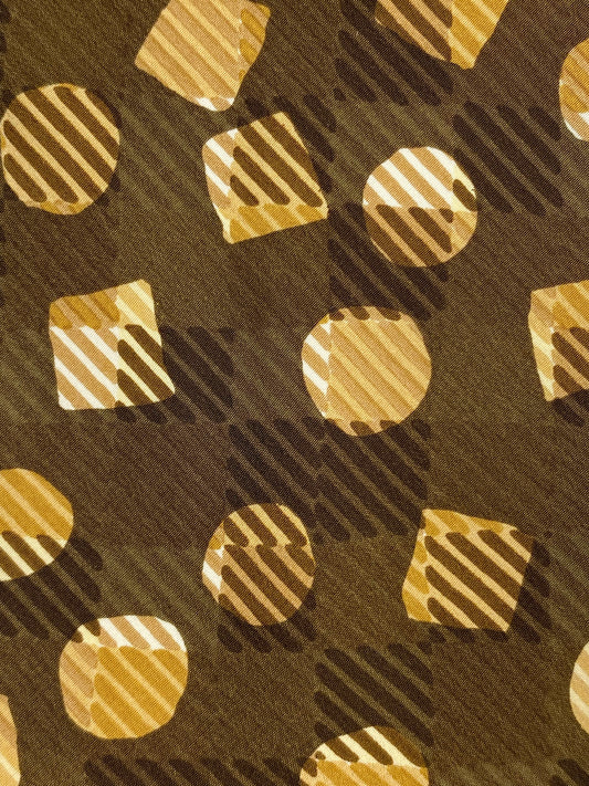90s Deadstock Silk Necktie, Men's Vintage Brown Circles & Squares Check Pattern Tie, NOS