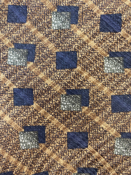 90s Deadstock Silk Necktie, Men's Vintage Bronze/ Navy Geometric Square Pattern Tie, NOS