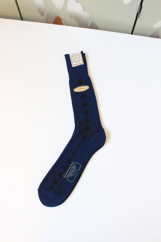 80s/90s Deadstock Christian Dior Blue Argyle Nylon Socks, Size 10-13, Multiples
