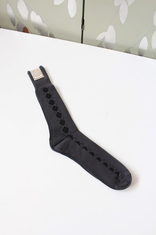 80s/90s Deadstock Christian Dior Grey Argyle Nylon Socks, Size 10-13, Multiples