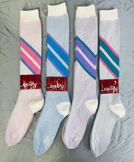 Vintage 1980s Deadstock Pastel Nylon Knee Socks with Repp Stripe, Kayser, x5 Pairs