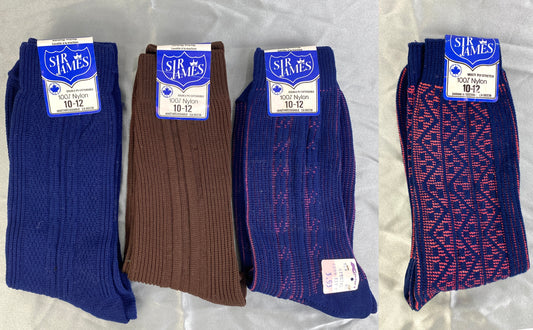 Vintage 1970s Deadstock Brown and Blue Nylon Socks, x6 Pairs