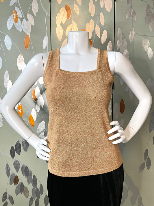 Vintage 1980s Gold Lurex Wool Metallic Tank Top, Small